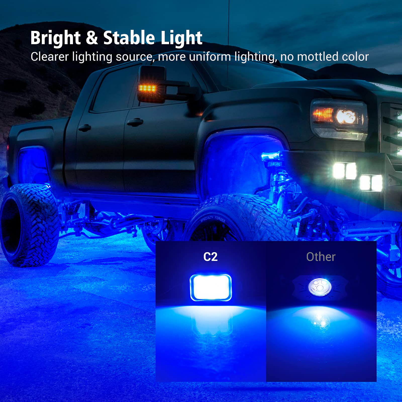 Amazon Com Mictuning C2 Curved Blue Led Rock Lights 4 Pods Underglow Lights Compatible For Car Truck Offroad Atv Utv Boat Automotive